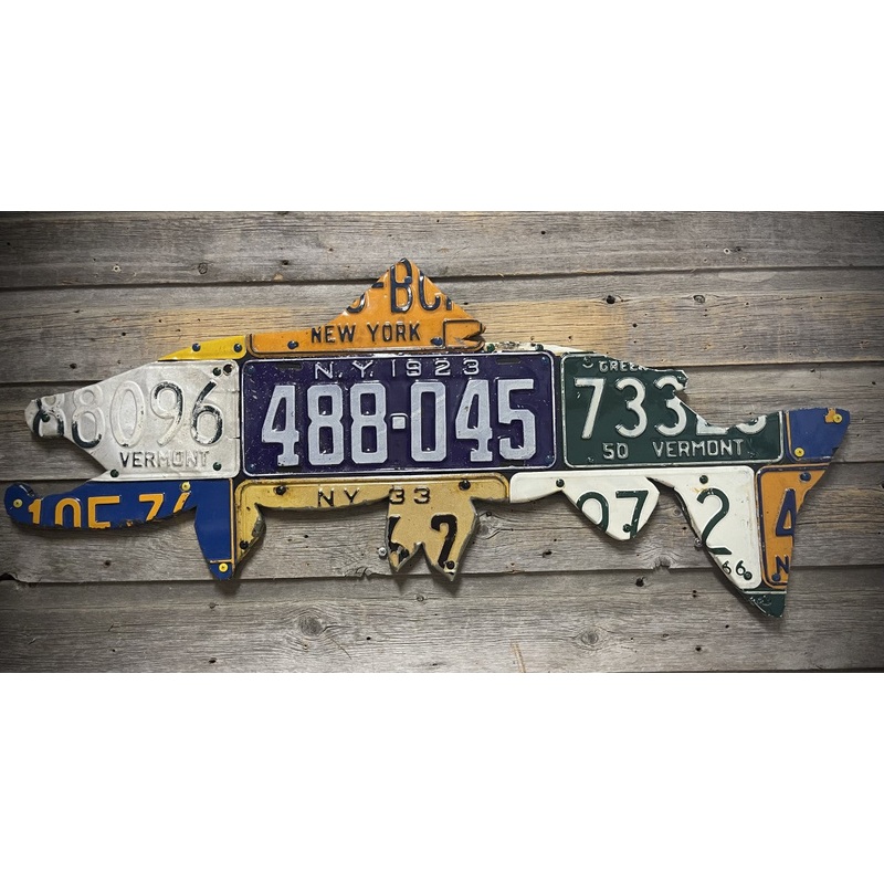 My popular brown trout silhouette is now in a smaller size. Perfect for offices, dens, sporting rooms, or as a compliment to the jumping rainbow silhouette.Every license plate art piece is handmade out of authentic license plates. Yours will look very simi