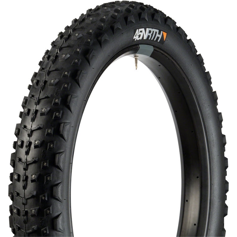 45NRTH Dillinger 4 Tire - 26 x 4 Tubeless Folding Black 120tpi 240 Concave Carbide Aluminum Studs. Dillinger 4 is a fast traction studded fat bike tire. The tightly spaced center tread rolls quickly while taller braced side lugs improve cornering in snowy