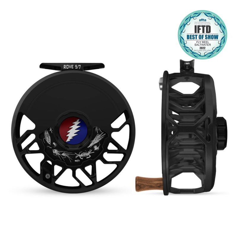 Abel ROVE Reel 5/7 Black, Grateful Dead Lightning Bolt Drag Knob with Walnut Handle