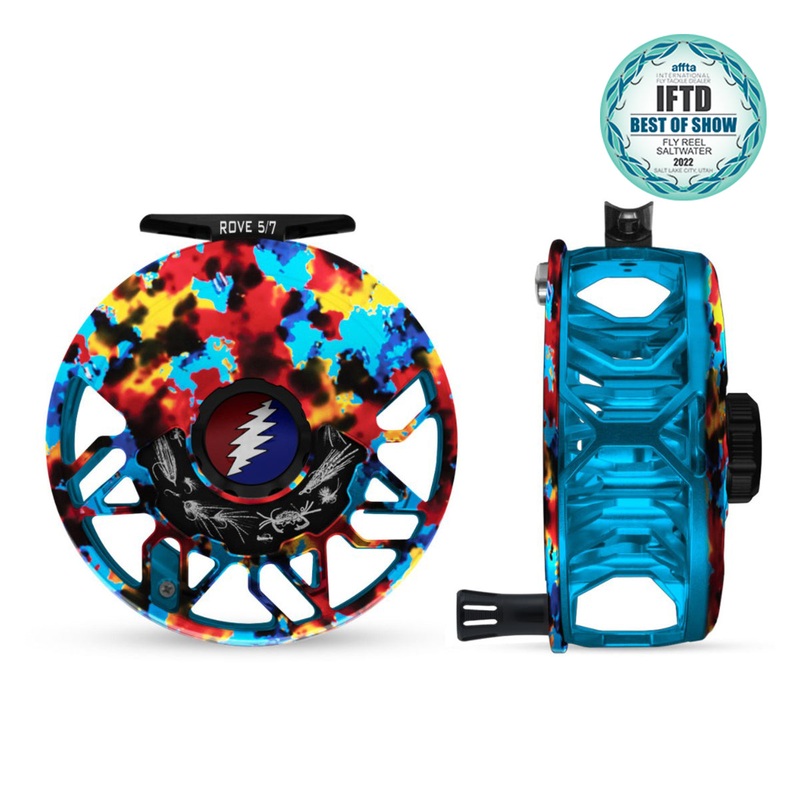 Abel ROVE Reel 5/7 Retro Caribbean, Grateful Dead Lightning Bolt Drag Knob with Black Handle