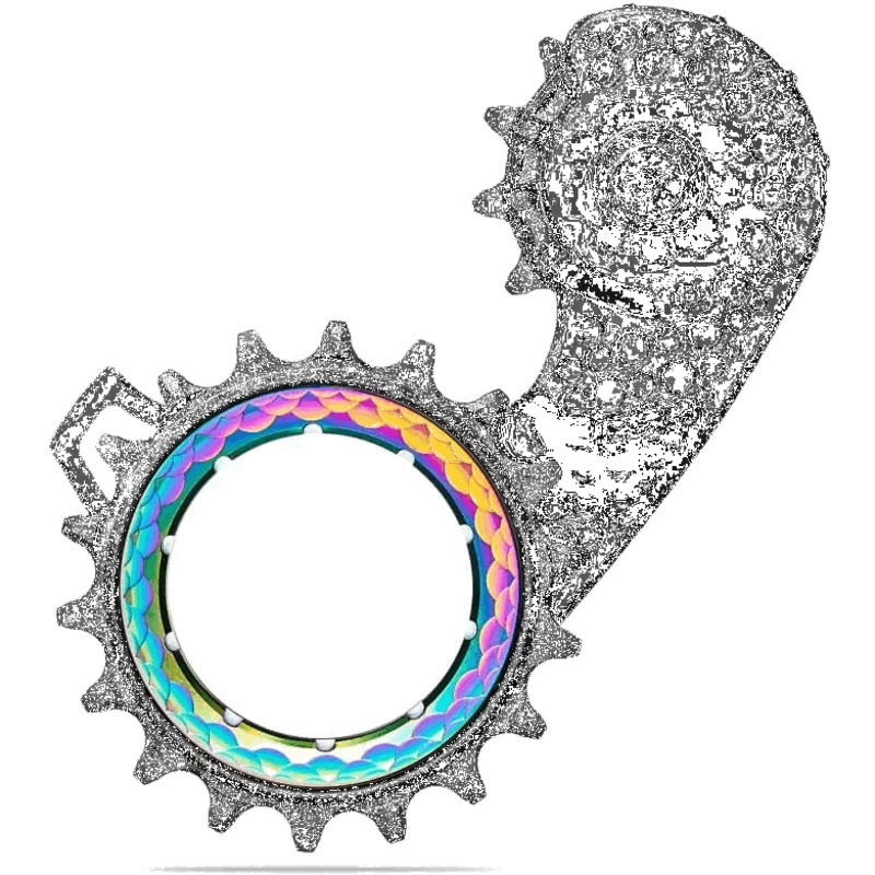 HOLLOWcage for Shimano 9100 / 8000. Our revolutionary mono-plate OSPW design is the quietest, best shifting, aerodynamic derailleur cage design created to date, and it is a dawn of a new era for rear derailleurs. HOLLOWcage OSPW has a carbon-polymer mono-plate construction with bespoke, oversized, full ceramic bearings and the most advanced silencing pulleys ever created.