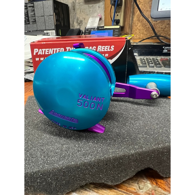 Accurate Boss Valiant BV-500N Single-Speed Lever Drag Reel Custom Ice Blue Purple