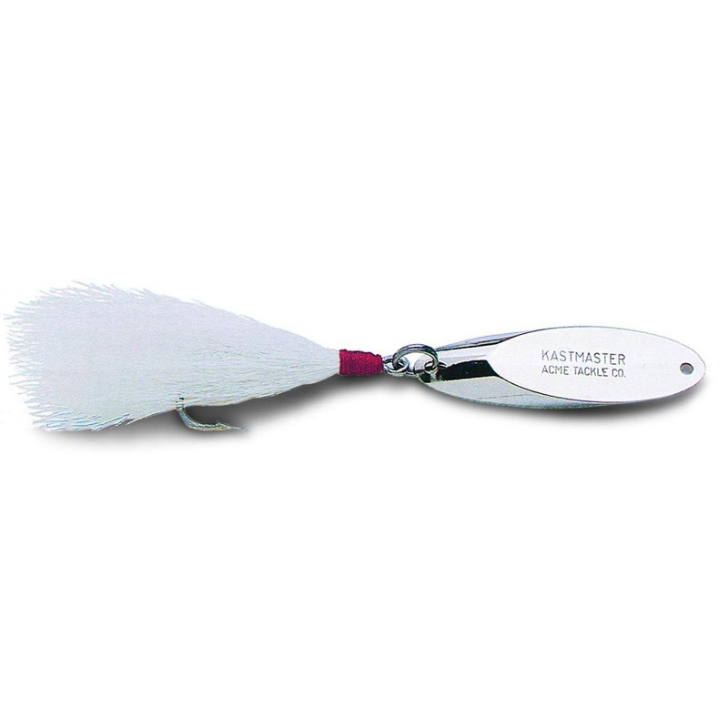 Acme Kastmaster Lure "J" Hook W/ White BucktailAcme Kastmaster Lures cast great and have a great presentation in the water. This model is equipped with a "J" Hook and White Bucktail