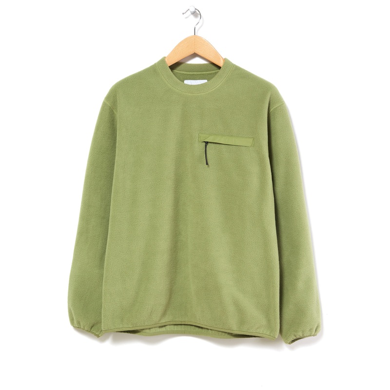 The fleece crewneck is based on a classic crewneck sweatshirt, but constructed in a light but insulating fleece, with a boxy, square shape and bound elasticated cuffs and hem. A self-fabric collar is a comfortable and welcome addition to this version, with a welted zip chest pocket for accessories rounding it out.
