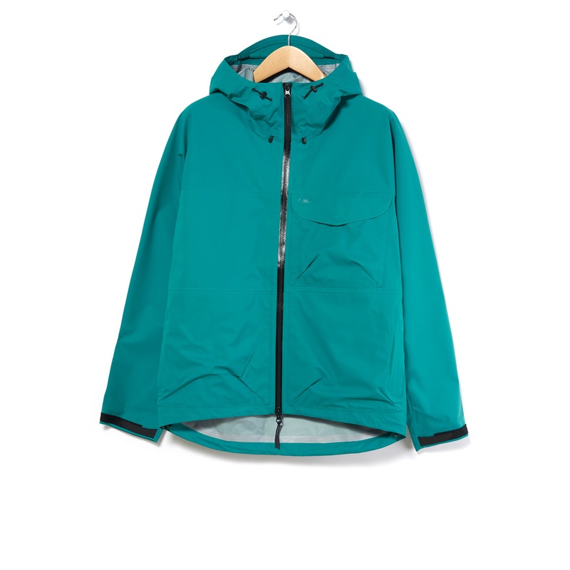 Adsum work hard at delivering relaxed silhouettes with performance characteristics. The Marsu Jacket is an ever-evolving Adsum constant. It has a wide, boxy shape which is constructed in a 3-layer waterproof ripstop fabric. It has a wide, bellowed snap fastening chest pocket, and two welted vertical hand pockets. A slight drop tail for coverage during activity, a two-way zip front with reflective zip ends and pit-zips round it out.