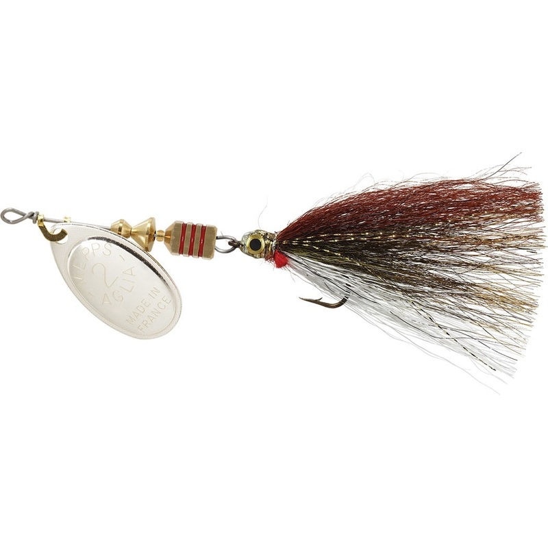 The Mepps #2 Aglia Streamer Single Hook Spinner is great for catching smallmouth bass, brook trout, rainbow trout, steelhead, walleye, and more. This spinner combines the vibration and flash of the classic Mepps Aglia blade with the subtle and lifelike swimming action of a hand-tied streamer. Featuring a single long shank hook, the Aglia Streamer makes the ideal presentation for the stream, river, or lake angler fishing for trout, salmon, or grayling. It’s also for the fisherman matching the forage for bass, panfish, or walleye. The Aglia Streamer will match any fishing situation.