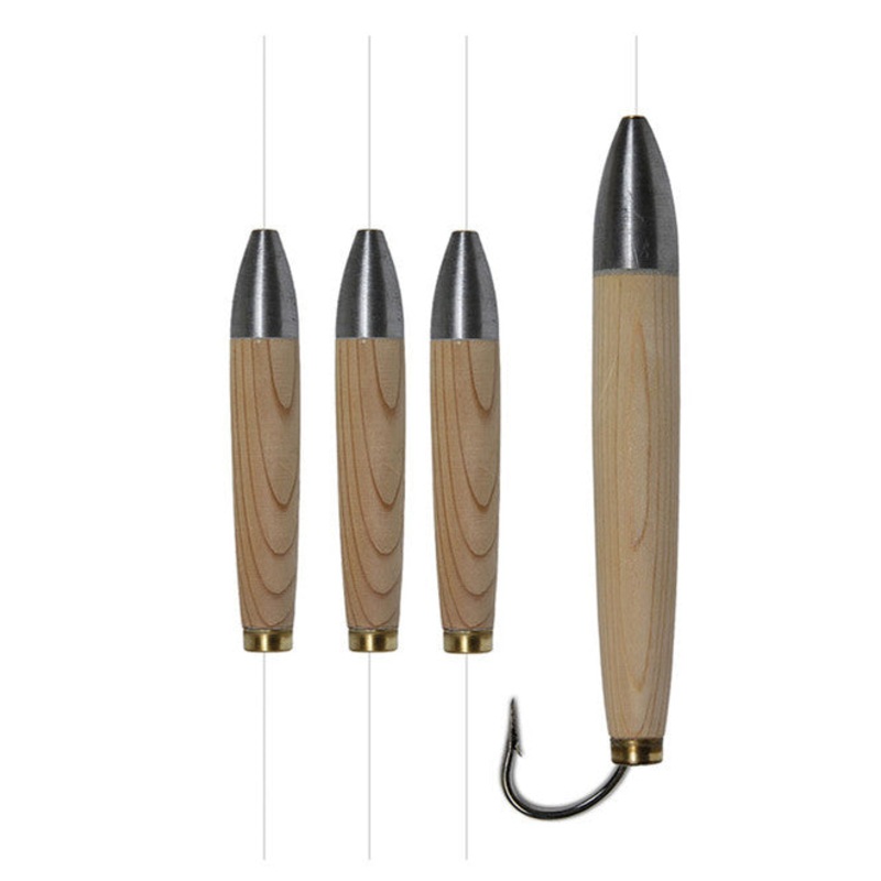 The Ahi USA Daisy Chain Cedar Plug is based on a traditional design that has proven successful time and time again. This plug features fine-tuned body construction, made with real natural cedar wood. Daisy Chain Ahi Cedar Plugs feature a 10/0 Mustad hook, fluorocarbon leader, and are double crimped for optimum reliability.