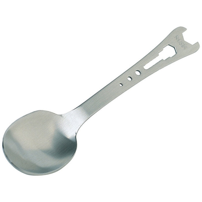 - Spoon on one end and a jet-and-cable tool for maintaining your MSR liquid-fuel stoves on the other