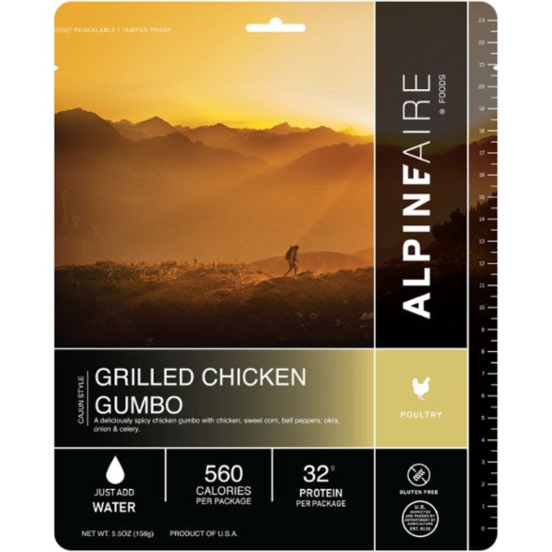 Ingredients: Instant White Rice, Cooked Freeze-Dried Diced Chicken, Chopped Onion, Mixed Red & Green Bell Pepper, Freeze-Dried Sweet Corn, Tomato Flakes, Potato Starch, Low Sodium Salt, Freeze-Dried Okra, Low Sodium Chicken Broth, Onion Granules, Garlic Granules, Minced Green Onion, Sassafras Leaf Powder, Black Pepper, and Cayenne PepperView all AlpineAire Foods Backpacking Dinners