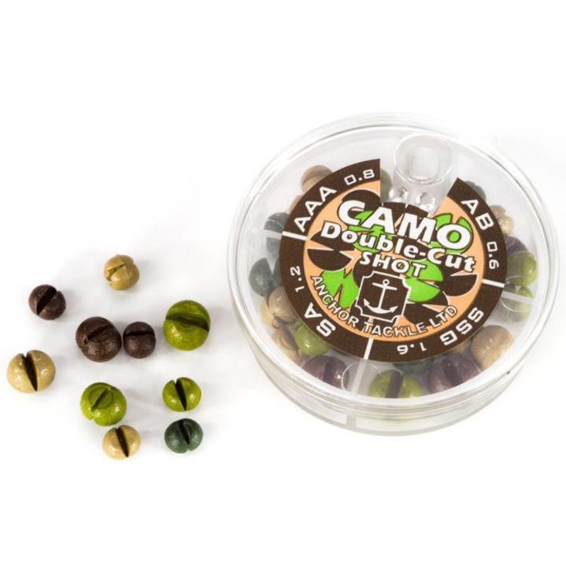 Anchor Dispenser Split Shot Non-Toxic Camo Big 6, Double Cut split shot from Anchor that features non-toxic camo color in six sizes.