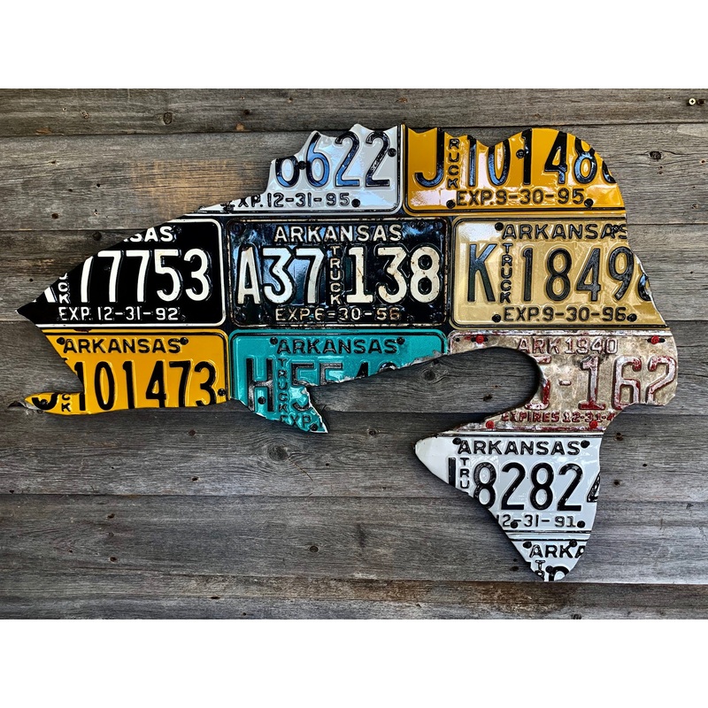 Every license plate art piece is handmade and is unique. Yours will look very similar but will not be exactly the same as the photo example.Please allow 3-4 weeks for creation and delivery. Contact me for rush orders.Framing:No-Frame - All of my pieces are