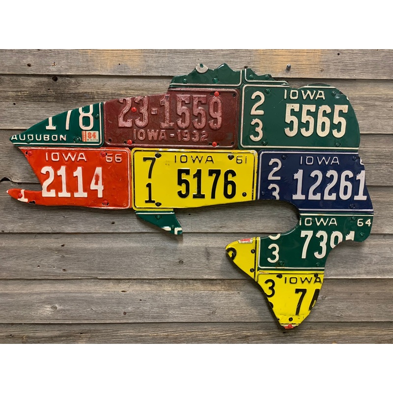 Antique Iowa Largemouth Bass License Plate Art