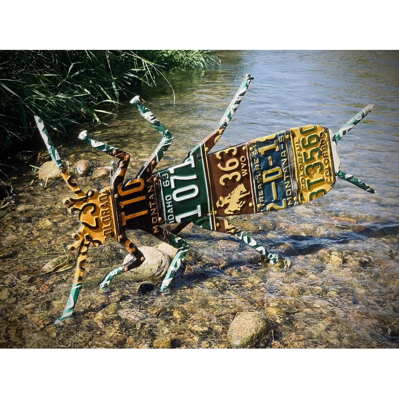 Celebrate those stonefly hatches that we look forward to each year. Every license plate art piece is handmade and is unique. Yours will look very similar but will not be exactly the same as the photo example. The 100 pound golden retriever, Ranger, is there to help with sizing.