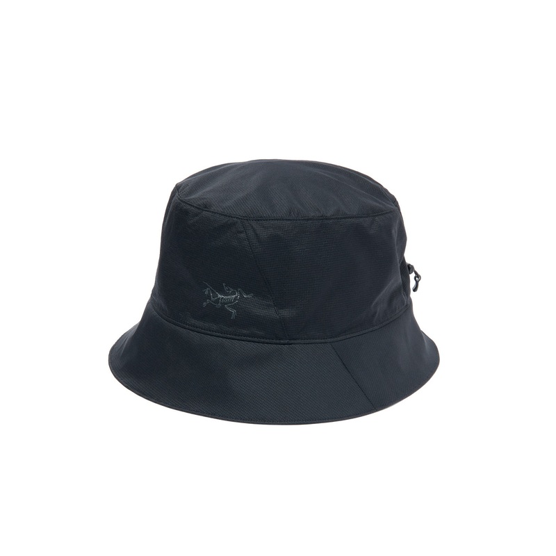 A hyperlight bucket hat from Arc'teryx. Highly air-permeable Airshell stretch nylon material maintains airflow, with a secure and comfortable fit thanks to a single-hand shock-cord adjuster. The headband is very soft and breathable, whilst the brim maintai