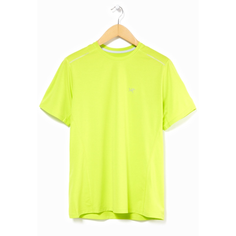 A close fitting, technical t-shirt designed for trail running. Utilising the Arcteryx Phasic LT material, a wicking synthetic performance fabric, with excellent air-permeability. A durable anti-odour material keeps things fresh long term. Merrow off-set seams for comfort, with an articulated pattern for comfortable movement. Finished with small reflective bird logo to the chest.