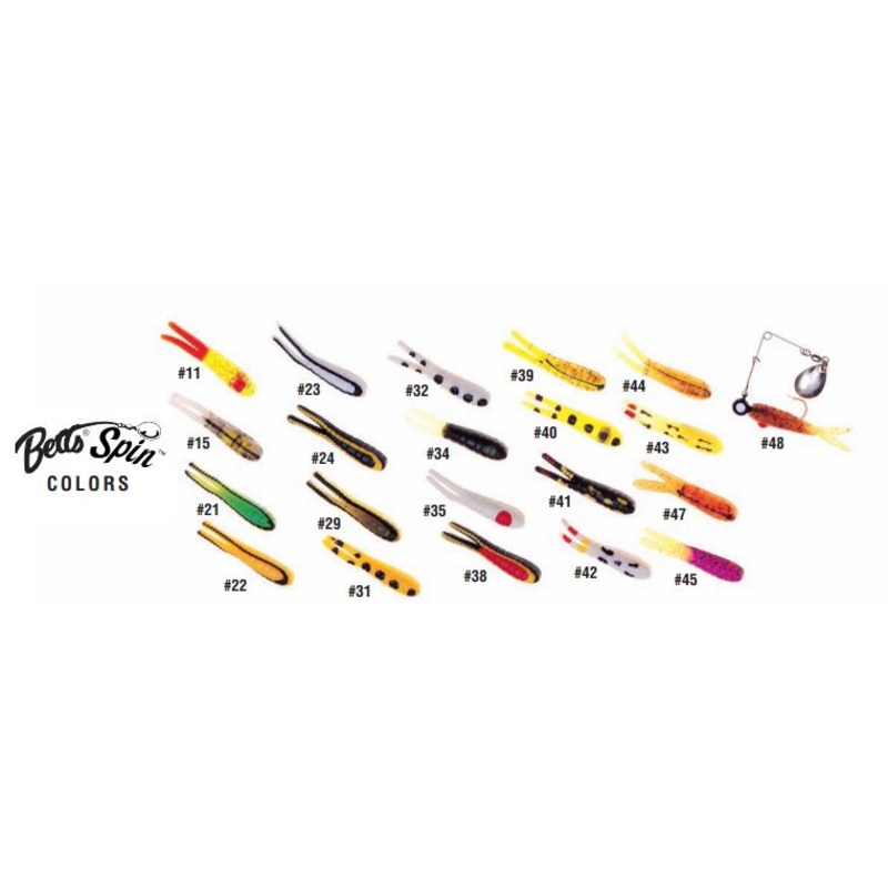 Hand poured and custom decorated colors. Gold hooks. Original style head with barb to hold lure on hook with large painted eyes. High quality spinner. Special hand painted dot. Spinner attached to lure.
