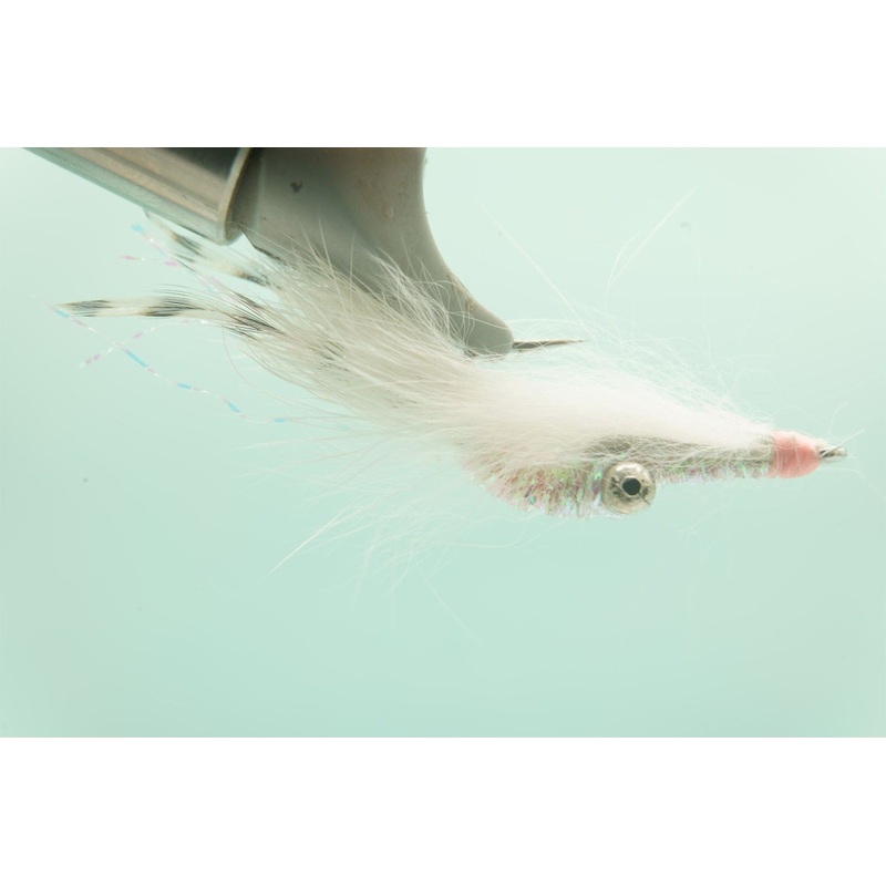 The Big Bone Daddy is a realistic shrimpy pattern that lands softly on the surface and suspends in the water column. The bead chain eyes are set back about 3/4 of the way to the bend of the hook. Bunny fur hides the hook gap and badger tips make the antenn