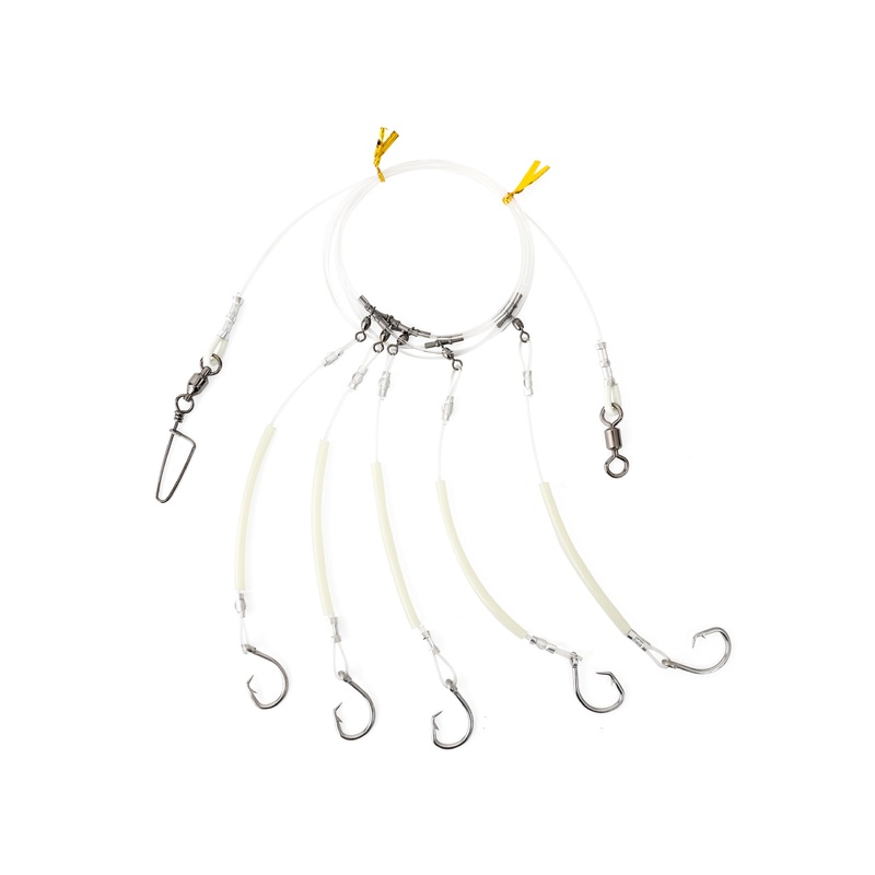 Premium Quality:Crafted from high quality, durable and corrosion-resistant, bringing you a pleasant fishing experience.Glow Tubes:Equipped with glow tubes, it can glow in the dark and has a strong attraction for fish.Barrel Swivel:Equipped with barrel swivel for flexible rotation to prevent entanglement during use.Sharp Hook: Sharp stainless steel hooks can easily penetrate fish.Application: Suitable for saltwater and freshwater fishing, such as snapper, tileifsh, grouper.