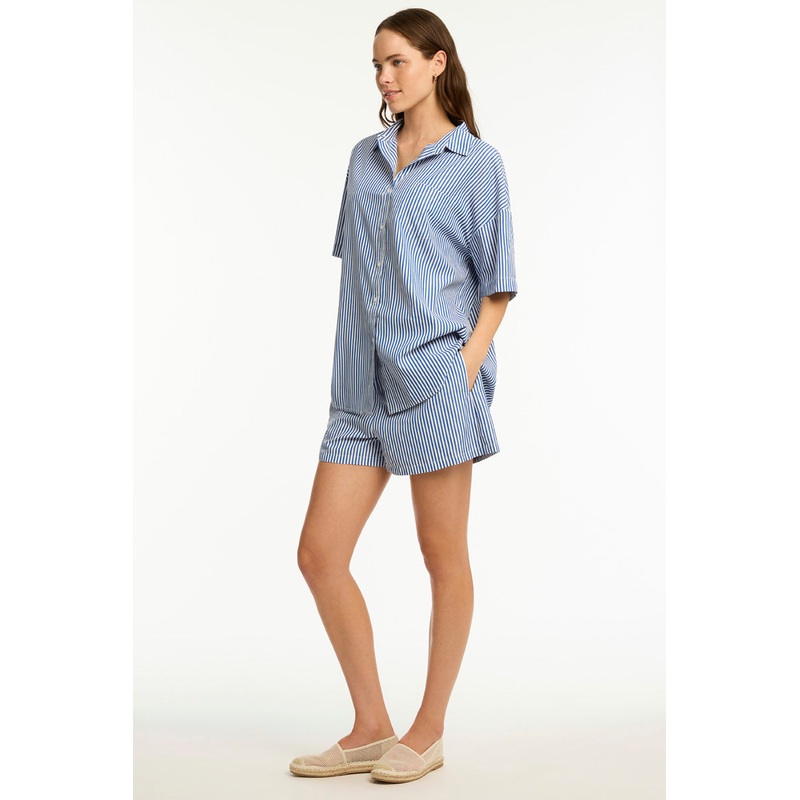 Boathouse is your go-to for effortless resort style, featuring a timeless blue and white stripe design. Designed for easy layering over swimwear, or mix-and-match colours for polished resort chic.Relaxed loose fitButton throughSleeve with placketFabric Com