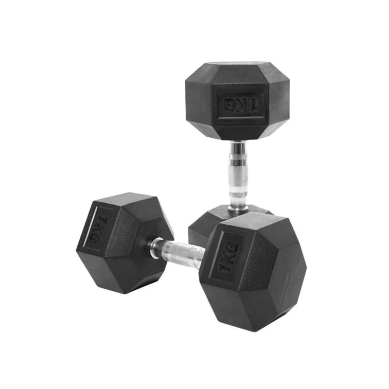 Body Sculpture Hex Rubber Dumbbell with Chrome Handle 1kg – 25kg Pair