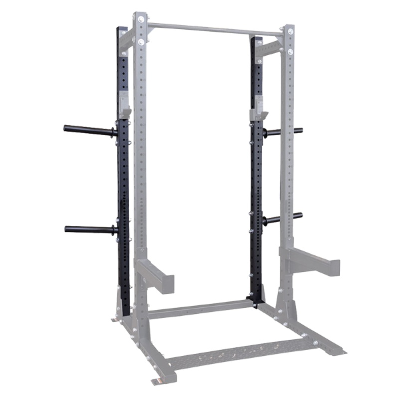 Body Solid Pro Clubline Commercial Half Rack ExtensionSPRHALFBACKThe SPR500HALFBACK includes four Olympic weight horns for plate storage, with enough space to add more if needed. The SPR500HALFBACK is also the ideal place to add more optional storage items
