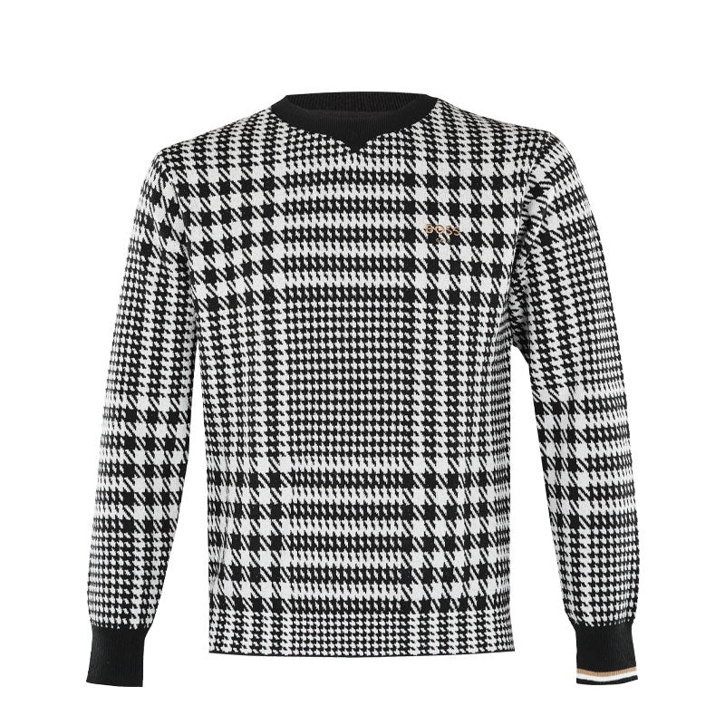 - Classic check-patterned round-neck sweater
