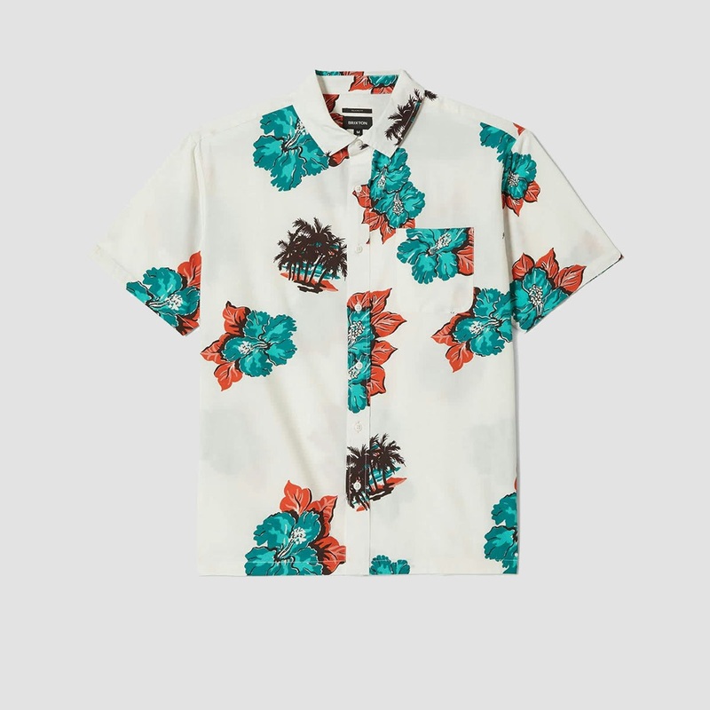 Brixton Cru Print Short Sleeve Shirt Off White/Aquatic Green Floral