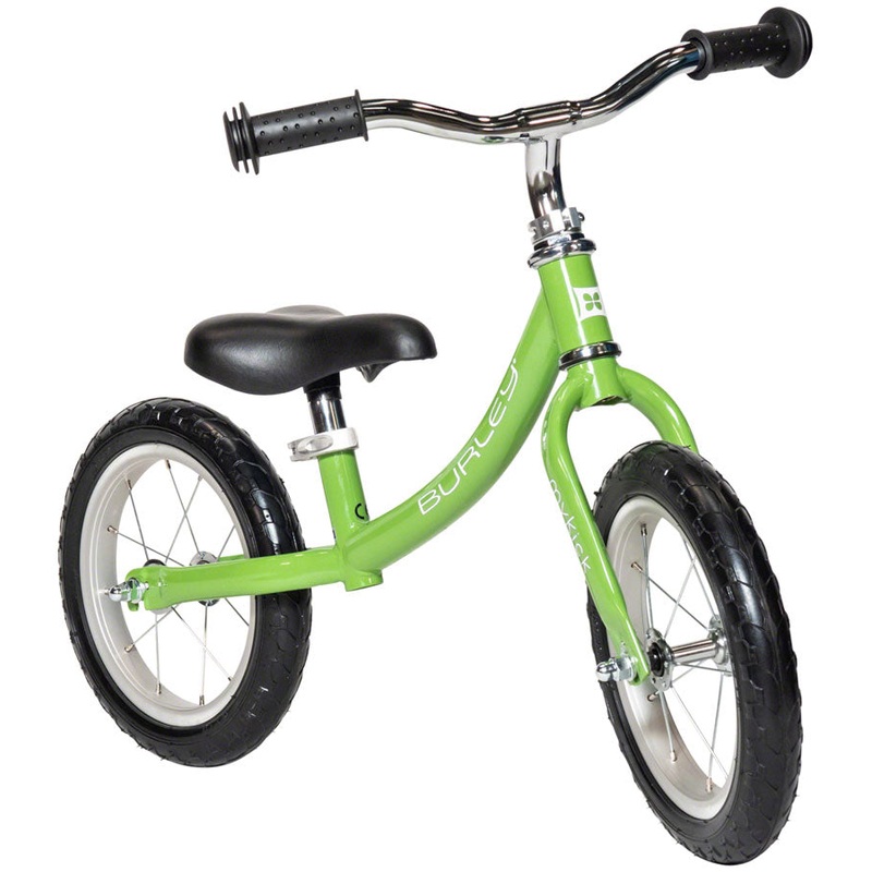 Burley MyKick Balance Bike: Green. For kids that arent ready to pedal a bike the MyKick balance bike lets them power along just by kicking. Learning to coast and balance on two wheels is part of the natural evolution to riding a bike. With an adjustable se
