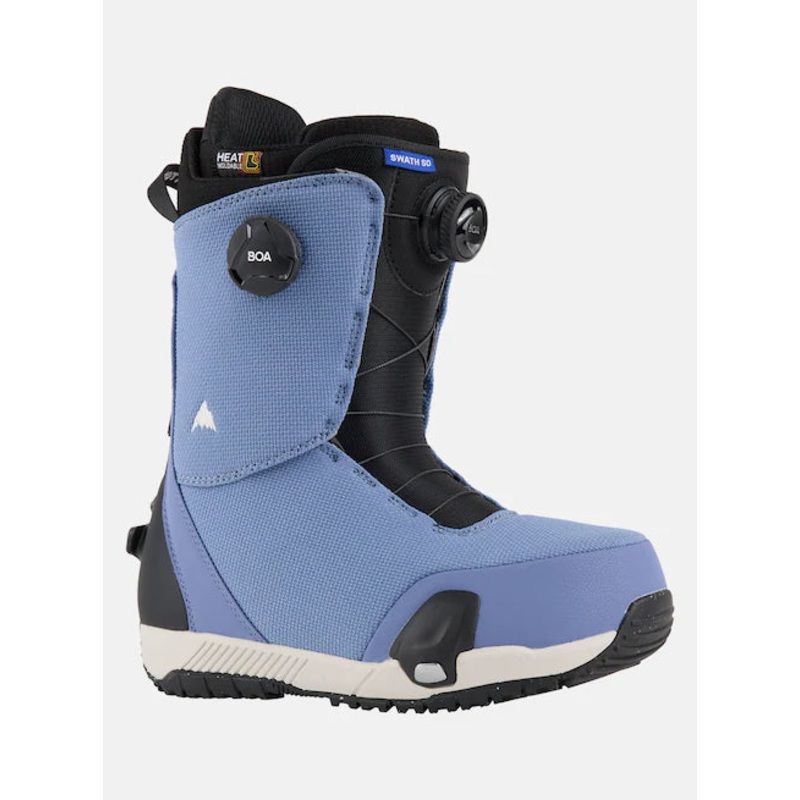 Just step on and ride. The men’s Burton Swath Step On Snowboard Boots add step on binding simplicity to the Swath’s mid-flexing freestyle feel. An articulated cuff opens up the range of motion for a freestyle feel with solid heel hold. Just turn the dial on the Dual-Zone BOA Fit System for effortless forefoot and upper boot adjustment. Reflective heat tech in the boot cranks up the warmth, while a heat-moldable liner hugs your foot’s natural shape, so you can ride longer.