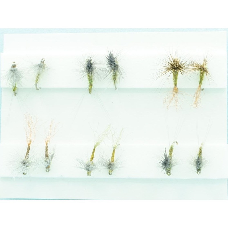 BWO is short for Blue Winged Olive but is also referred to as a baetis. These are tiny Mayflies that can hatch any time of year, but primarily in the cooler months of Fall, Winter and Spring. Their colors are pale olive to dark olive. Blue Winged Olives are a very important food for trout and this assortment consists of our bestselling sizes and patterns that represent BWO dries.