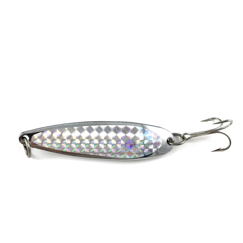 The Twister Spoon from Candy Bar Lures is a versatile spoon style fishing lure that can be used a variety of ways. Jig it, troll it or cast and retrieve with at slow, fast or intermittent pace. It casts great even in strong winds making it ideal for surf fishing as well as casting from a boat. Fish can’t resist to bite the Candy Bar’s because of its life like sassy swimming action, shinny chrome finish and realistic silver prism scale (on one side). On sunny days, the lure puts off a great reflection which catches the eye of even skittish fish.