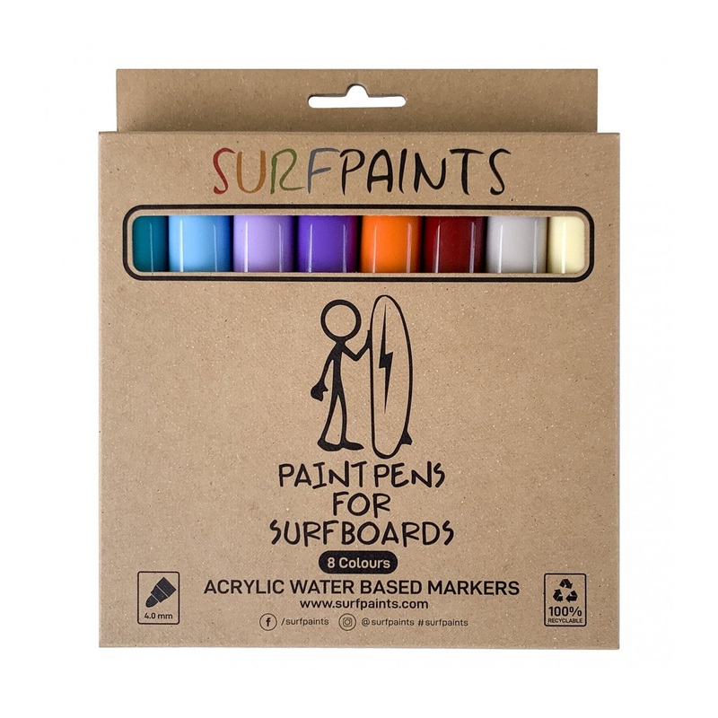 Este set composto por 8 marcadores de vrias cores (*) em tons pastel com ponta de 4.0mm-----SURFPAINTSso marcadores de tinta acrlica indicadapara personalizar a tua prancha de Surf. Os marcadores SURFPAINTS, dado serem base acrlica, podem ser usados em sup
