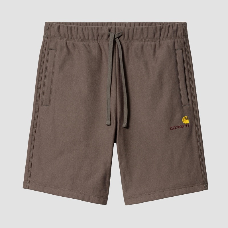 Made from heavyweight cotton-poly jersey that has been brushed for a fleece-like backing, the American Script Sweat Short has a loose fit. The garment is detailed with two side pockets and a back pocket. An embroidered American Script logo appears on the left leg.