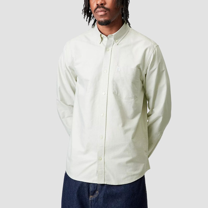The L/S C-Logo Shirt is a button-down style made of lightweight Oxford cotton that has been yarn-dyed, for a deeper and longer lasting color. It has also been garment-washed for a softer feel. The item is cut in a regular fit, and detailed with a pocket and subtly embroidered Carhartt WIP ‘C’ Logo on the chest.