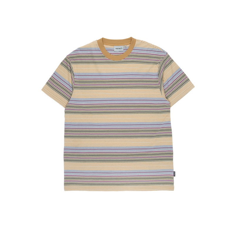 A nostalgic multi-stripe t-shirt, Carhartt WIP's Coby T-Shirt is delivered in a roomy, relaxed fit with a discrete woven label in the side seam and a contrast collar. 100% cottonContrast ribbed collarYarn-dyedWoven tab labelRelaxed fit, choose your usual s