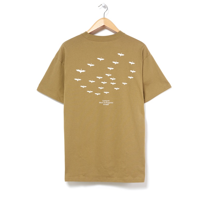 With a catalogue of superior designs, Carhartt are past masters at the logo tee. Delivering yet another solid seasonal graphic, the Formation T-Shirt has a chest print and bird formation print to the back.