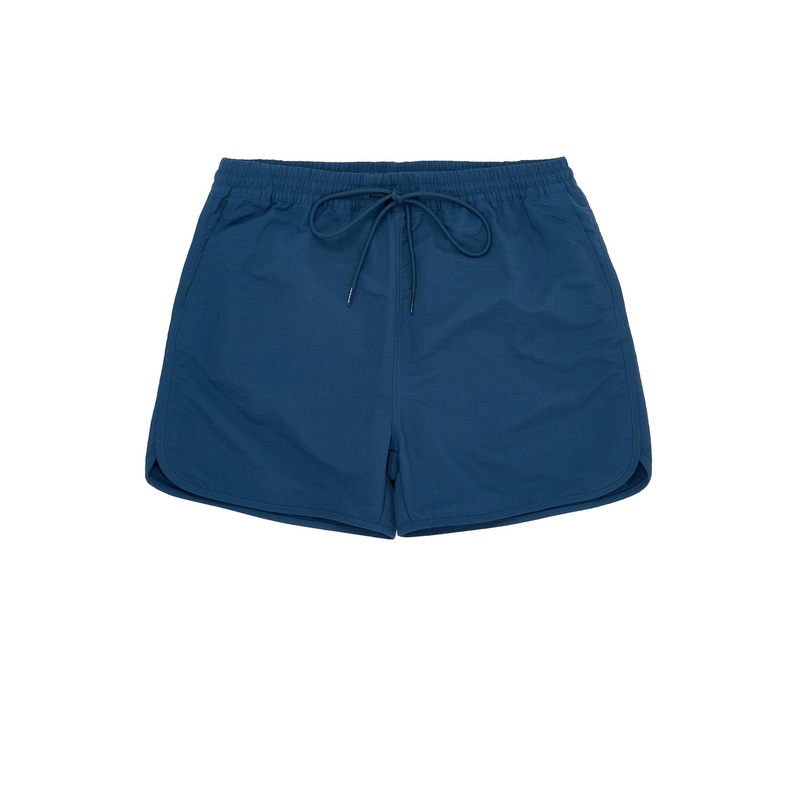 The Rune Swim Short is a swim short that can hold its own out of the water, with a sporty curved hem. It features an adjustable waistband and drawcord, two side pockets, and a key holder in the back pocket.
