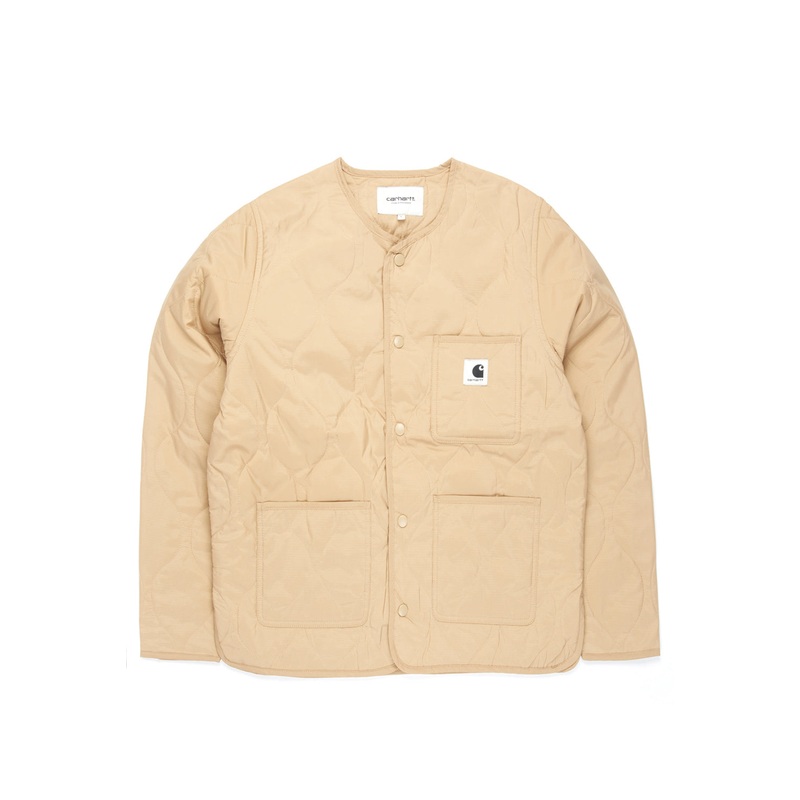 Taking inspiration from military liner jackets, the Skyler Liner has the definitive onion-quilting pattern. An unfussy, utilitarian style, its constructed in a durable, recycled polyester ripstop. A collarless design, with a snap button front and three pat