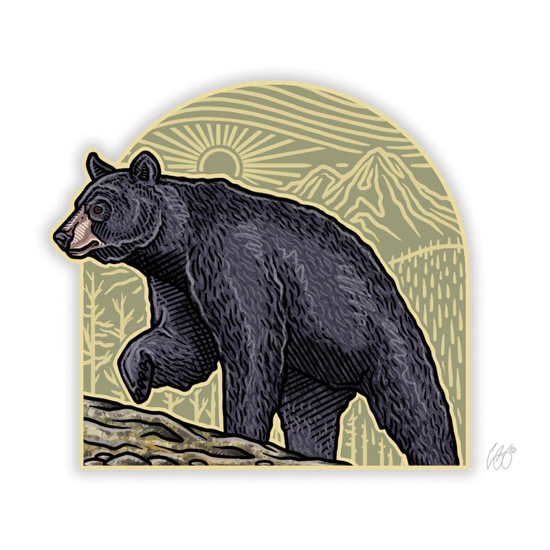 This Underwood Exclusive design features a Black Bear walking up a rocky slope. In the background you can see mountain peaks and a timbered hillside. If you love black bears, this might be the perfect sticker to adorn your gear or vehicle.Specifics:Durable