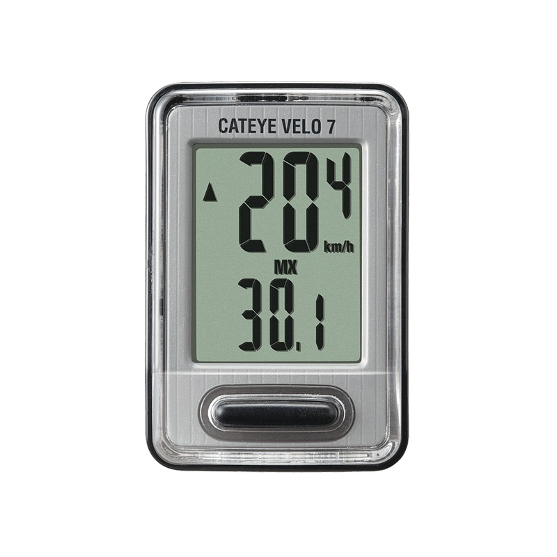 The newly designed Velo 7 is CatEyes entry level 7 function computer. The new, larger screen is even easier to read and set up is made simple with pre-programmed tire sizes.FunctionsCurrent speedMaximum speedAverage speedTrip distanceTotal distanceElapsed