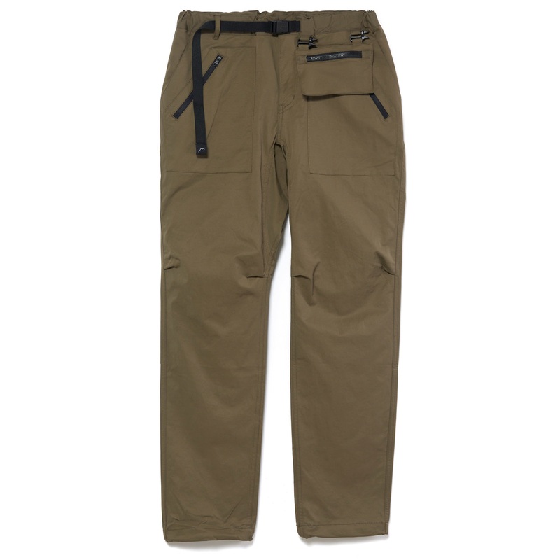 A new iteration of CAYLs utilitarian Mountain Pants 2 is produced in a technical mix of nylon, cotton, and spandex, giving durability, comfort and stretch. The Mountain Pant is constructed with an integrated clip belt, gusseted crotch and darts at the knee