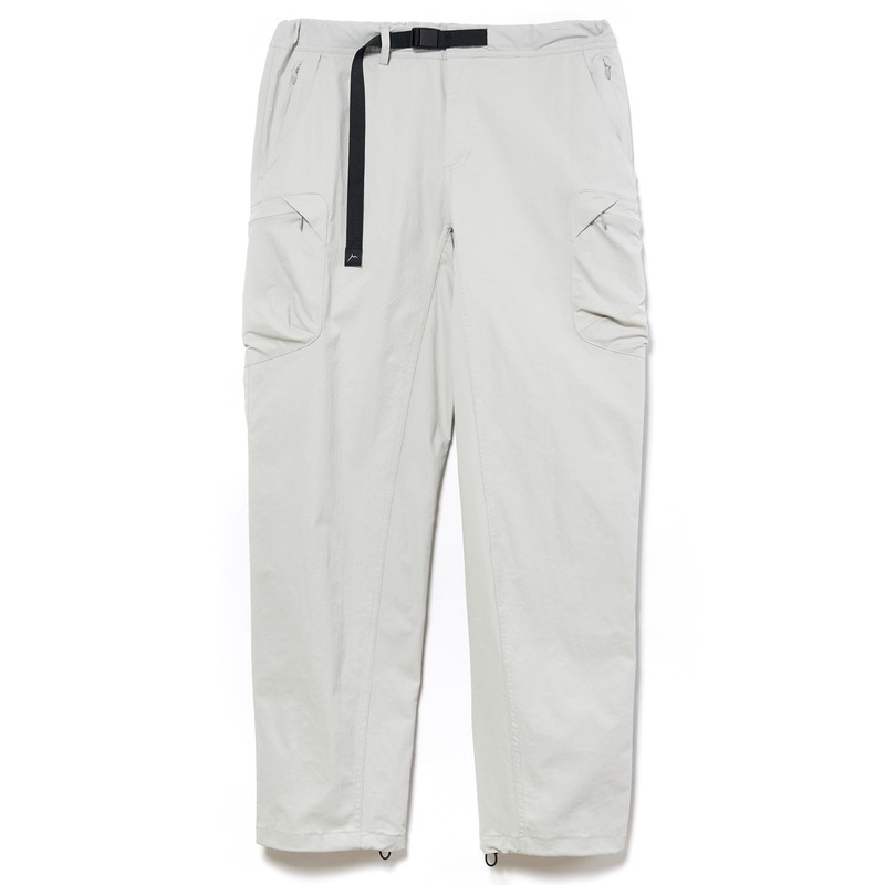 Produced in a technical mix of nylon, cotton, and spandex, which together lend durability, comfort, and a wide range of motion. The NC Stretch Cargo Pant is replete with 8 pockets; two mesh lined hand pockets, with hidden zip pockets set behind, two snap fastening back pockets, plus two zip cargo style at the thigh. Moving on from the pocket configuration, the Nylon Stretch Pants have a gusseted crotch and integrated webbing belt. Theyre finished with shock cord adjustable hems, that have an additional gusseted hidden zip.