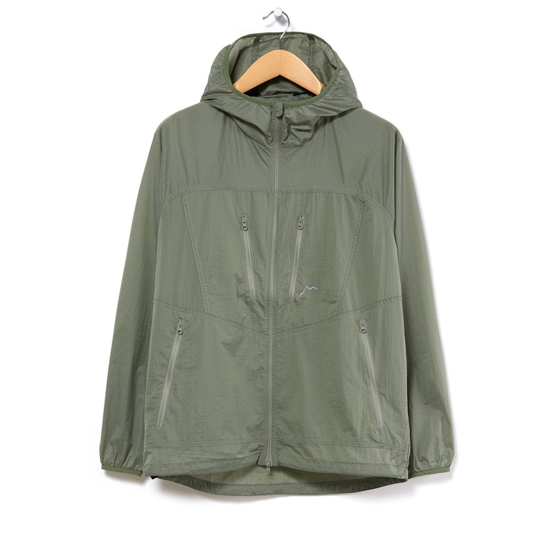 A windproof, packable, and breathable ultra-light layer from South Koreas, CAYL. The jacket is woven from nylon yarn which has a very slight ribbing and a satisfying, textured feel. The hood, shoulders, top-chest and arms are printed with a highly reflecti
