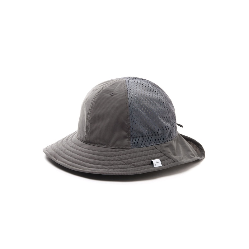 Progressive technical headwear from Koreas CAYL, the Stretch Nylon Mesh Hat is a lightweight wide brimmed bucket with spacer mesh panels to aid temperature regulation. A wide malleable brim provides all-round shade coverage, with a drawcord adjuster to fin