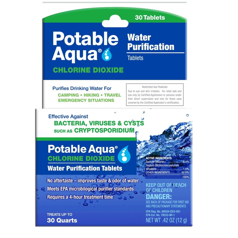 No aftertasteImproves taste and odor of waterMeets EPA microbiological water purifier test standardsRequires a 4-hour treament timeTreats up to 30 quarts30 pack
