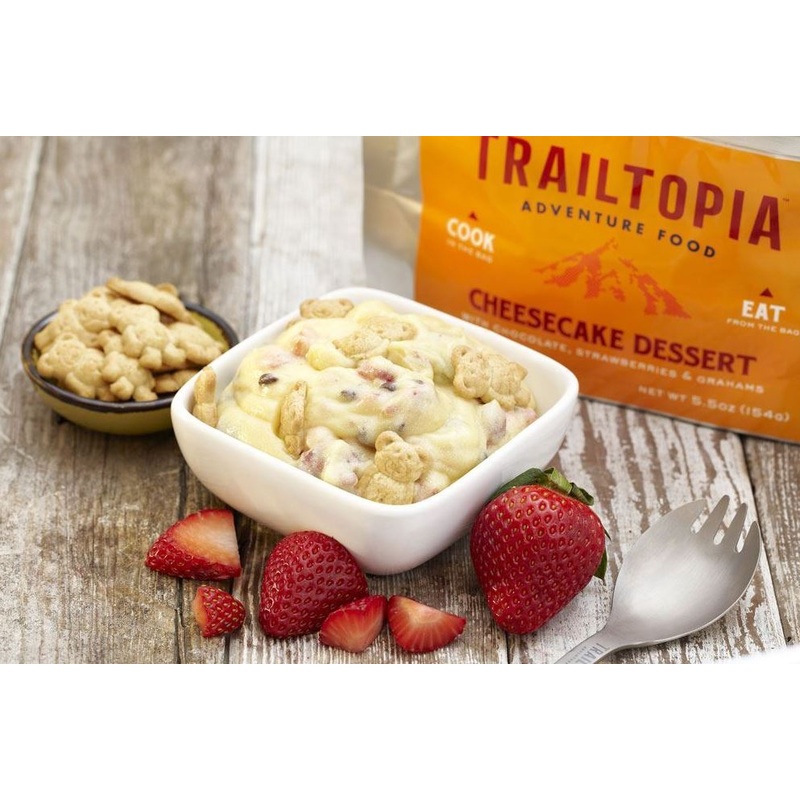 Perfect for winding down from a long day of adventures, this delectable cheesecake is loaded with real strawberries, mini chocolate chips and includes a separate packet of homemade grahams.
