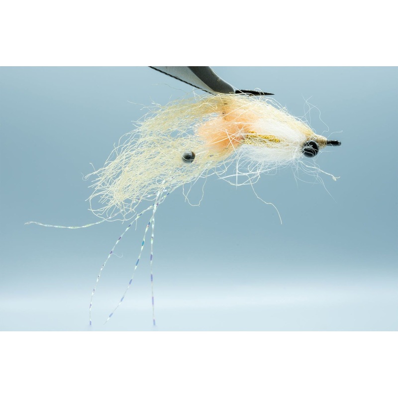 The Christmas Mantis from RIO is the culmination of the search for the perfect pattern for both bonefish and triggerfish.It sportsthe same muted, creamy color combination that makes the Christmas Island Special so effective. It is tied with epoxy shrimp eyes for realism, and small lead dumbbell eyes to get it down in the zone.