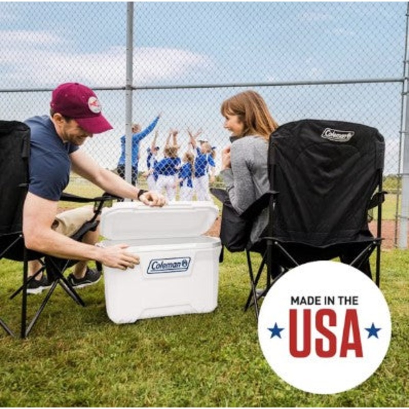 Inspired by our Wichita roots and the people who work there, the Coleman Classic Series of hard coolers brings uncompromising quality and a legacy of craftsmanship and adventure wherever you take them. Food and drinks stay chilled longer with the Classic Series 52-Quart Marine Hard Cooler, which Keeps the Ice up to 3 days. Carrying a full load? Enjoy easier lifting with the swing-up side handles, then have a seat on the closed lid. Not to worry, cup holders built into the lid will keep your drink close and prevent spills. Made to withstand the challenging conditions of being on the water, the UVGuard coating helps protect the cooler from damaging sun rays. The stainless steel hardware prevents rusting and corrosionextending the life of the cooler. With room for up to 80 cans, you’ll easily fit refreshments and the day’s catch on fishing trips.