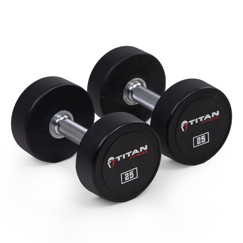 The Urethane Dumbbells are designed to target a wide range of muscle groups, giving you a full-body workout. Each dumbbell is crafted from high-quality round urethane, molded around a solid steel handle with a medium depth knurling on the chrome finish handle, providing essential grip and security during use. Compared to traditional rubber dumbbells, Urethane is more durable, odorless by nature, and has greater shock resistance for better lifetime value and use. Perform curls, rows, deadlifts, flies, kickbacks, and presses, isolating your biceps, triceps, deltoids, glutes, hamstrings, abs, and more!