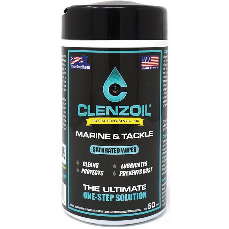 - Each container comes packed with approximately (50) 5 inch x 7 inch cotton fiber wipes pre-saturated with the tried and true Clenzoil Marine & Tackle formulation which is a one-step cleaner, lubricant, and rust preventative for fishing reels, tools, and other equipment exposed to extreme marine environments